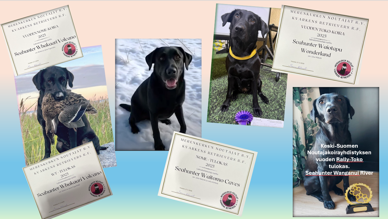 - SEAHUNTER ELITE STAR, NOWT ALO0, ALO1 sija4, NOME-B 4xVOI0, NOME-B VOI3, NOME-B 2xVOI2 Pohjois-Savon kennelpiirin Piirimestari NOME-B VOI3
